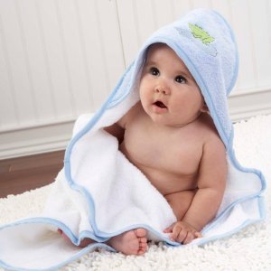 BA14005+-BL Color / Pattern: Blue / Finley the Frog Features: -Charming 4-Piece gift set with terrycloth hooded towel, washcloth and pair of slippers.-Hoodie towel with pink striping measures 30" square; hood measures 6" deep.-Hooded towel can be personalized with up to 12 characters.-Hooded towel and slippers have adorable appliqués of Finley sitting under a mushroom "umbrella.", tile in the tub, dilly snorkeling in a pond.-Terry washcloth measures: 7" x 6.13".-Reusable gift box with bellyband tied with grosgrain ribbon measures: 5" H x 7" W x 7" D.