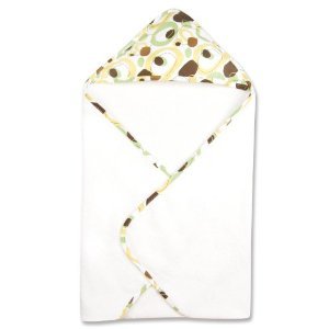 Trend Lab's Giggles Print Hooded Towel will keep your baby warm and dry after bath time. The white terry towel features a cotton twill free form circle print throughout the hood and trim in sage, buttercup, chocolate and caramel on a white background. Hooded towel measures 32" x 30".